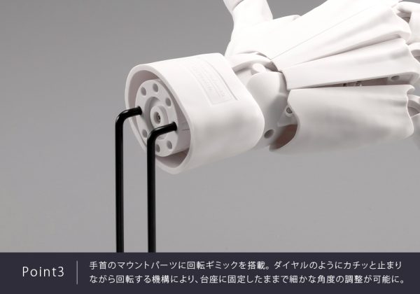 Point 2: The model’s articulation has been upgraded! Previous models focused on showcasing the clean form of the back of the hand. This new MEN’s model, however, has widened its focus to the metacarpal bones connected to the ring and pinky finger with a new joint system that can pose the model even more realistically than before.