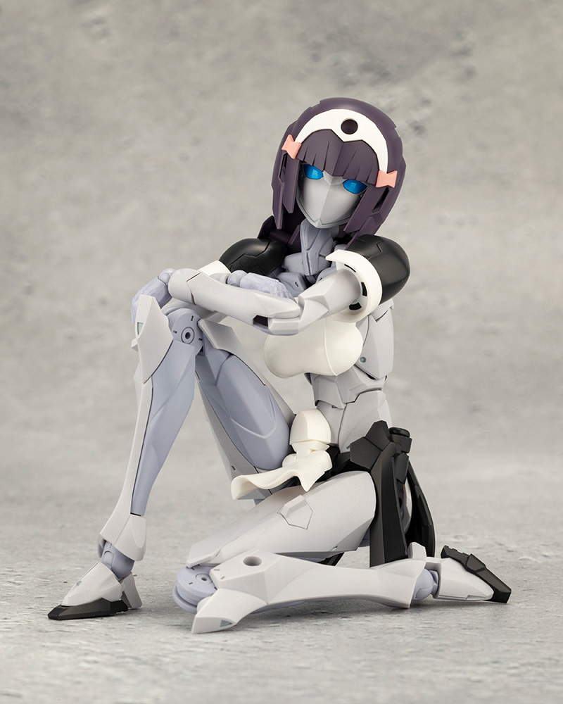 Novice has approximately 50 points of articulation throughout the body. The knee joint is comprised of a single layer of joints and can be bent inward enough to allow the model to sit with one knee up. The knee armor can move independently and can be adjusted to the desired position.