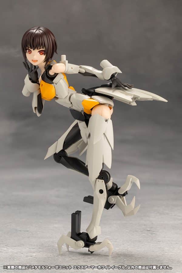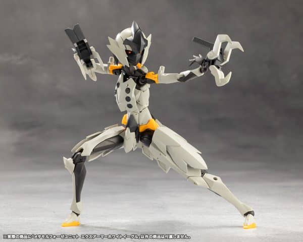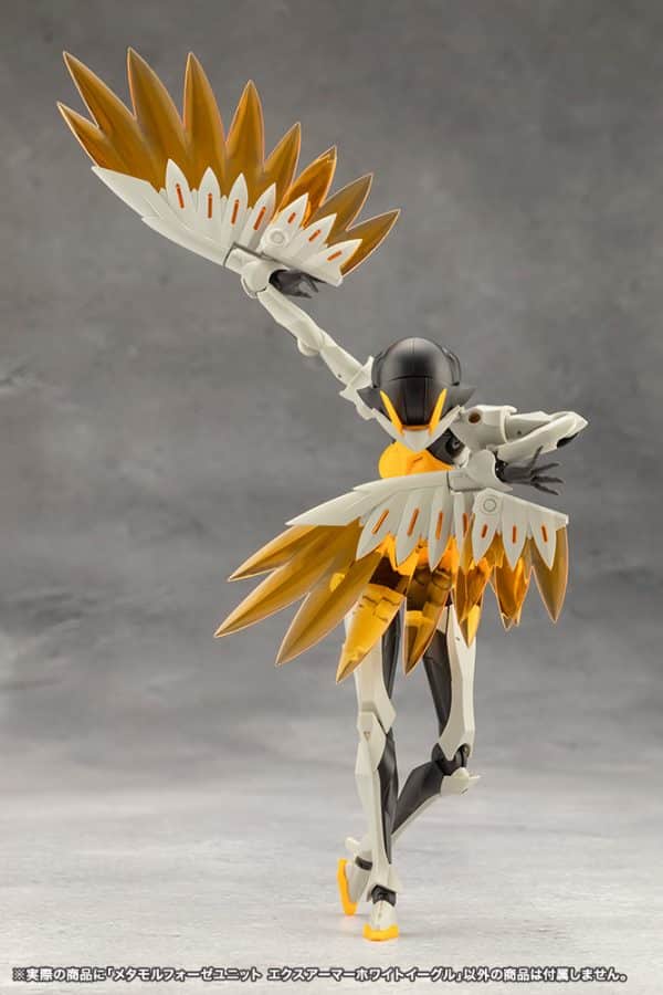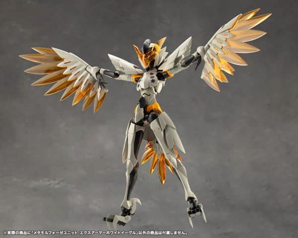 White Eagle is a set that combines the bird themed exarmor units such as the wings and beak, the Japanese themed fan and staff, and the expansion skin parts that can be attached to Sousai Shojo Teien models.