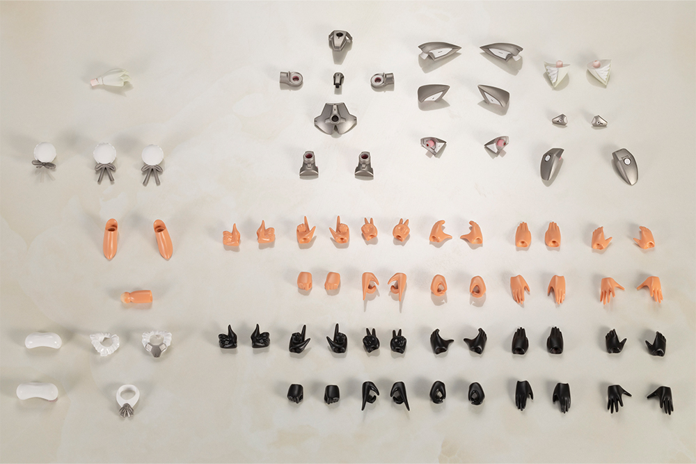 ・In addition to the five types of hand parts from the original Innocentia kit, six new types of hand parts are included (Heart Sign, Thumbs Up, Peace Sign, Pointing, Weapon Support, and Salute).