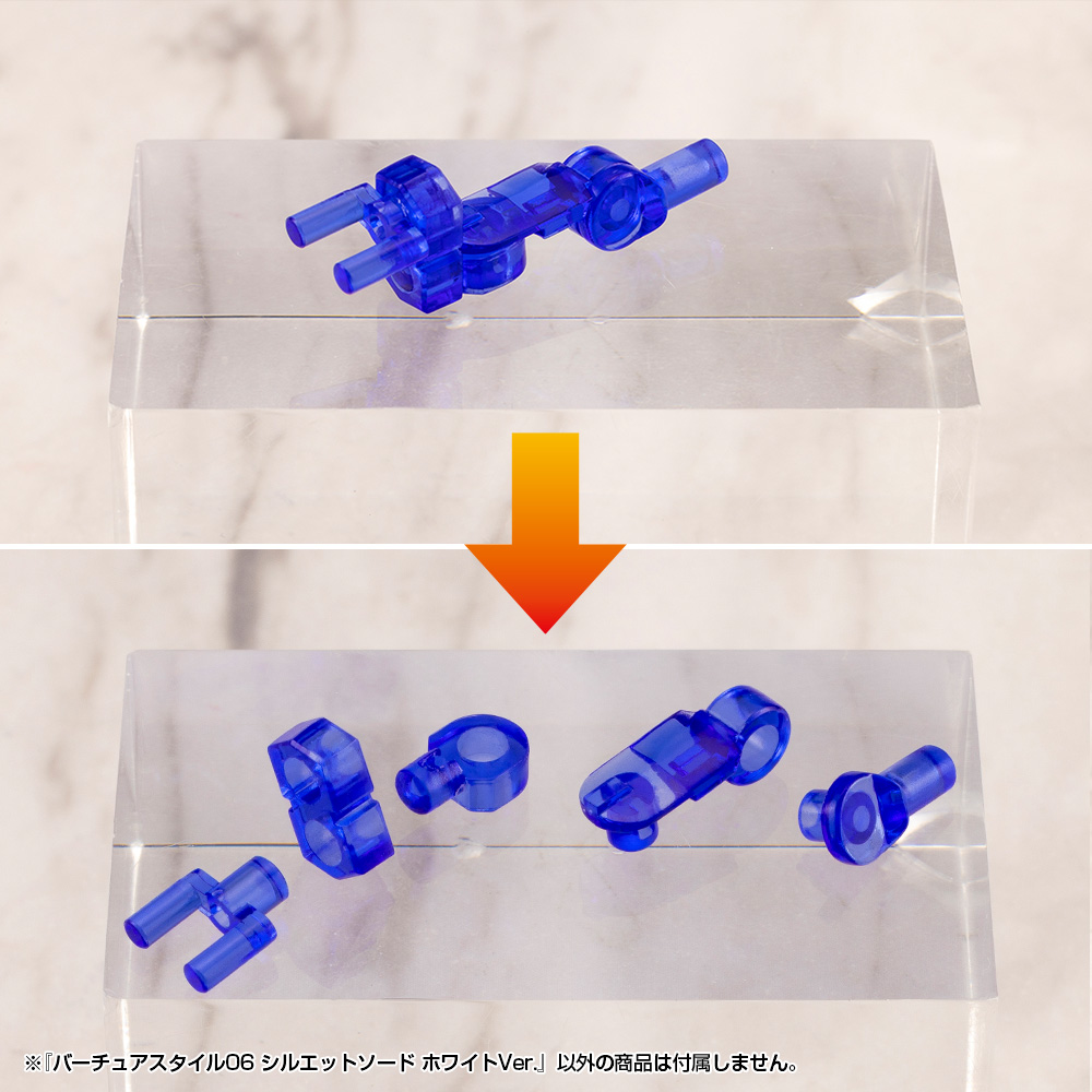 ■ The blade and movable suspension arm are molded in clear blue, while the frame is in shiny white.