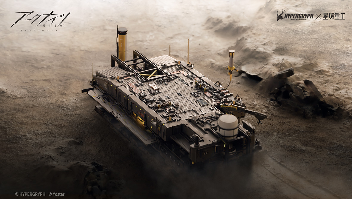 From the well-renowned game ARKNIGHTS comes a pre-assembled 1/2500 scale model of Rhodes Island.