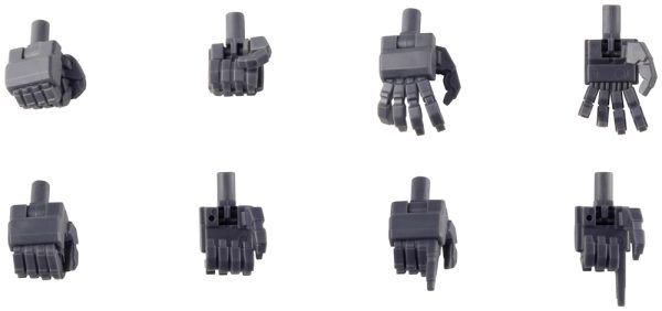 The variety of connector parts allows these hand parts to be used with a variety of Kotobukiya’s plastic model units, including the Frame Arms and Hexa Gear lines.