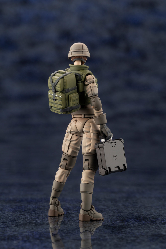 ■ A backpack, laptop terminal, and medical gun are included as optional parts. Display this model with HEXA GEAR BLOCK BASE 01 DX HEAD QUARTERS to create various realistic scenarios.