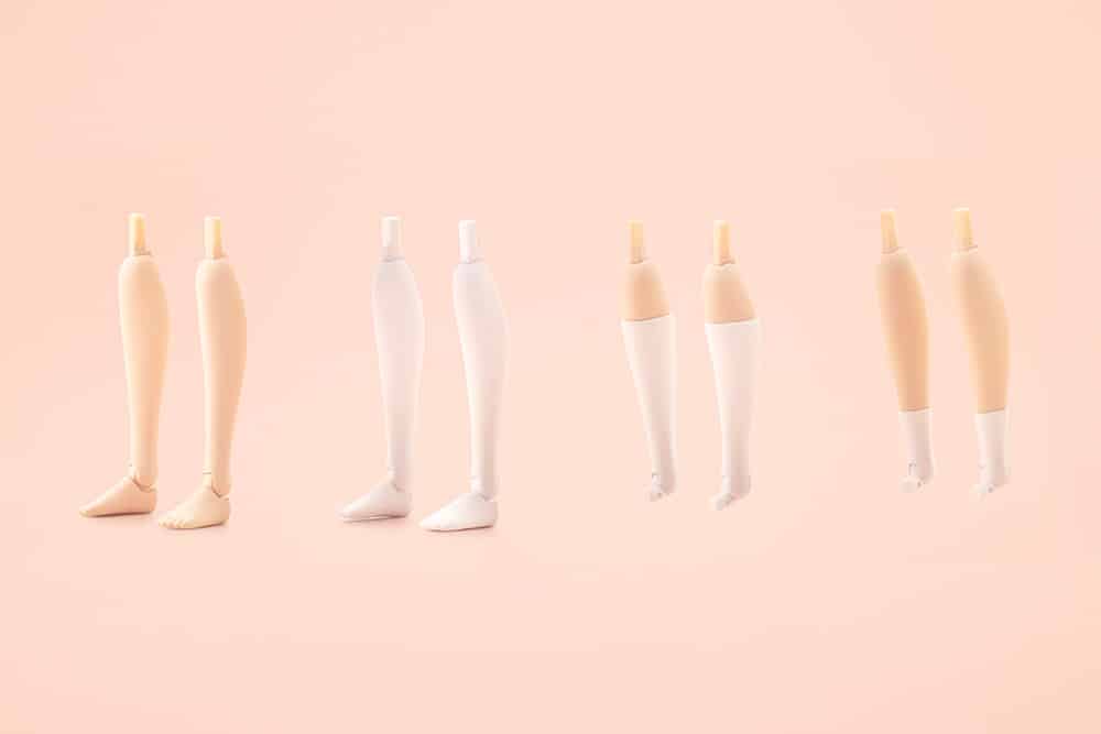 The set comes with three types of interchangeable calf parts and socks: Short socks, high socks and thigh-high socks.