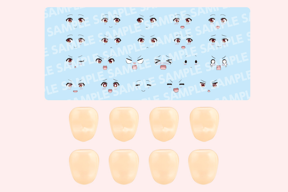 Type B does not have sculpted eyes or mouths like type A but also has no sculpted nose and features a rounder face line. This makes it perfect for creating funny-looking chibi faces.
