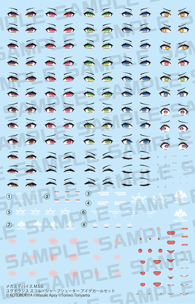 The support series for Megami Device is expanded upon with the latest addition, MEGAMI DEVICE M.S.G YGGDRASIS SKOLL SHARPSHOOTER EYE DECAL SET!