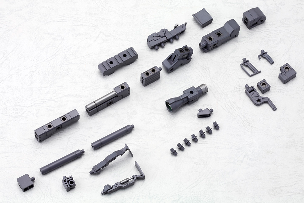The 3mm joints used to connect the parts and 3mm connection points installed all around the rifle make it compatible and customizable with FRAME ARMS and M.S.G WEAPON UNITS, as well as various other plastic model kits!