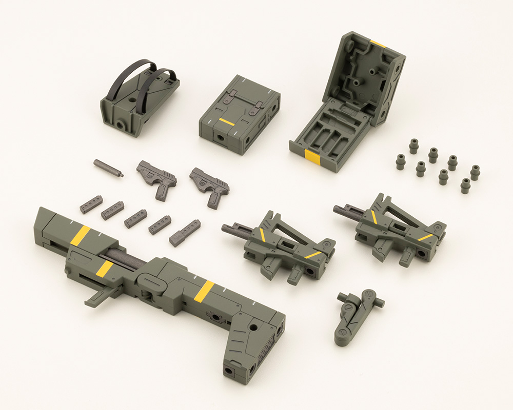 The units consist of a set of handguns, two transformable submachine guns, a tactical backpack, and a folding rocket launcher.
