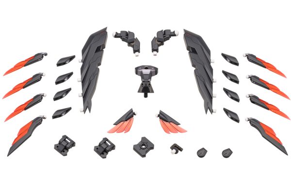 ■ The back arm unit consists of a main supporter, left and right arms, and left and right feathers. The main supporter is equipped with articulated parts and can be used with other kits.