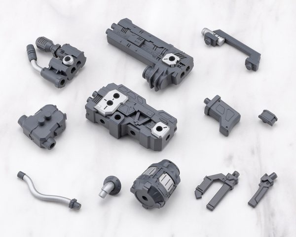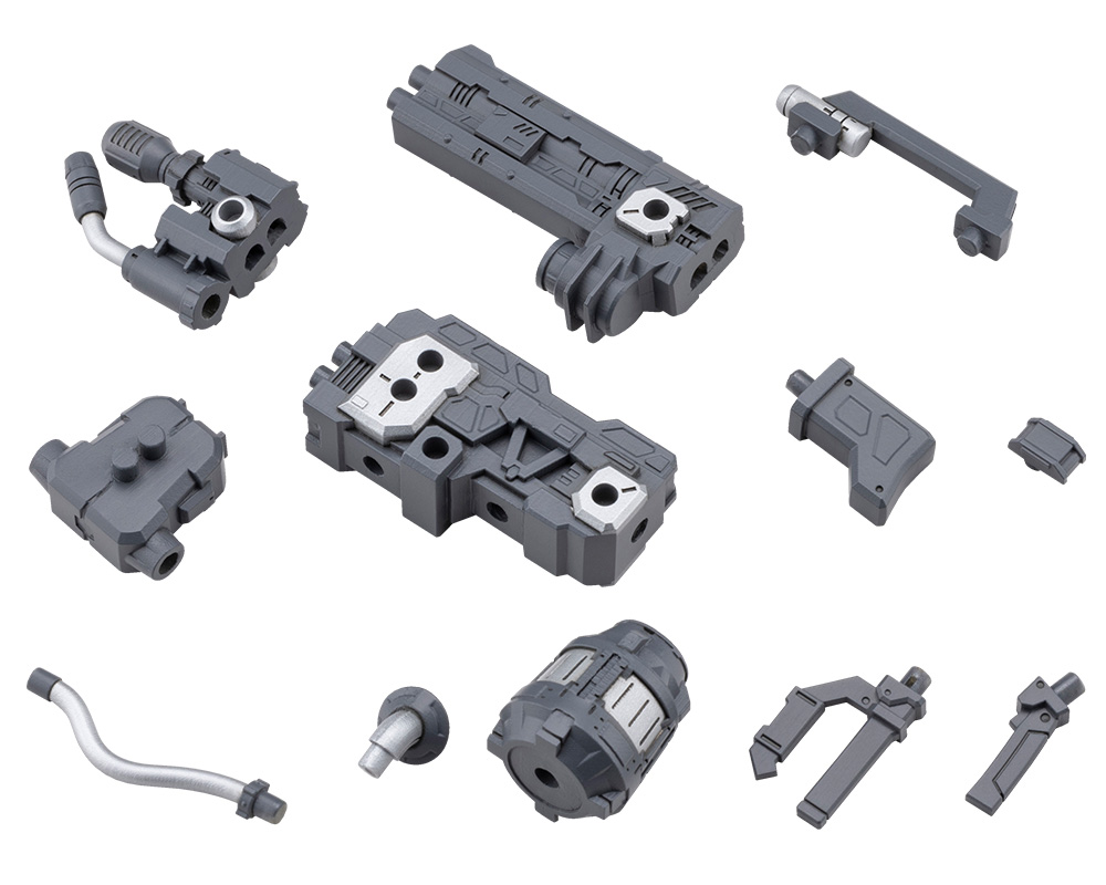 ■ All major parts connect using 3mm joints, including the muzzle, pipe, barrel, internal unit, carrying handle, stock, grip, and tank, allowing for flexible customization such as giving the unit a long or short barrel, or removing the tank.