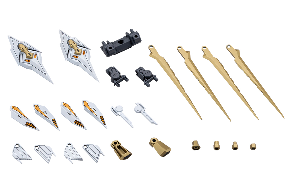 ■ The kit is molded in three colors: gray for the backpack unit, white for the wing slash units, and gold for the tail blades.