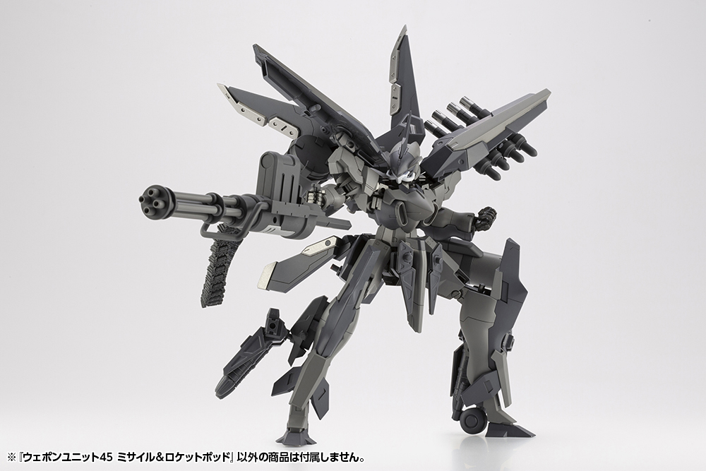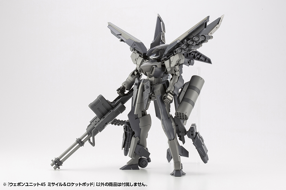 Effective in its simplicity, MISSILE & ROCKET POD joins the WEAPON UNIT series lineup. The missiles can be removed from the pylon, and the articulated base of the pylon allows it to be opened and set level on a surface.