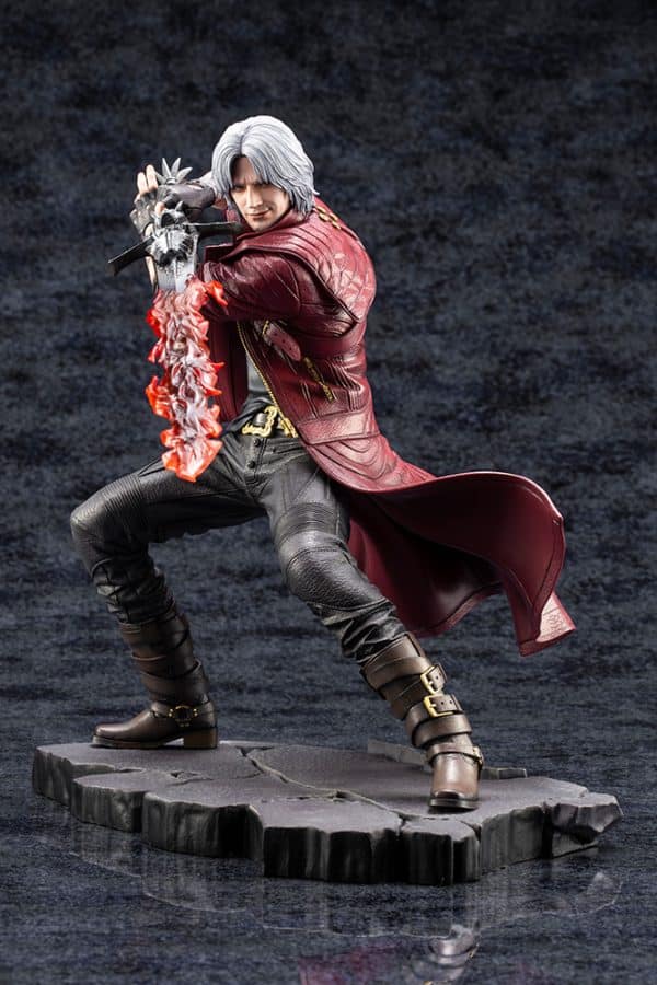 Dante appears as if he has jumped straight from the game, holding his signature blade “Rebellion” at the ready, an aloof expression on his face. Each detail of the character’s appearance has been carefully recreated, from the leather texture on his coat and trousers to the metal buttons and fasteners on his costume.