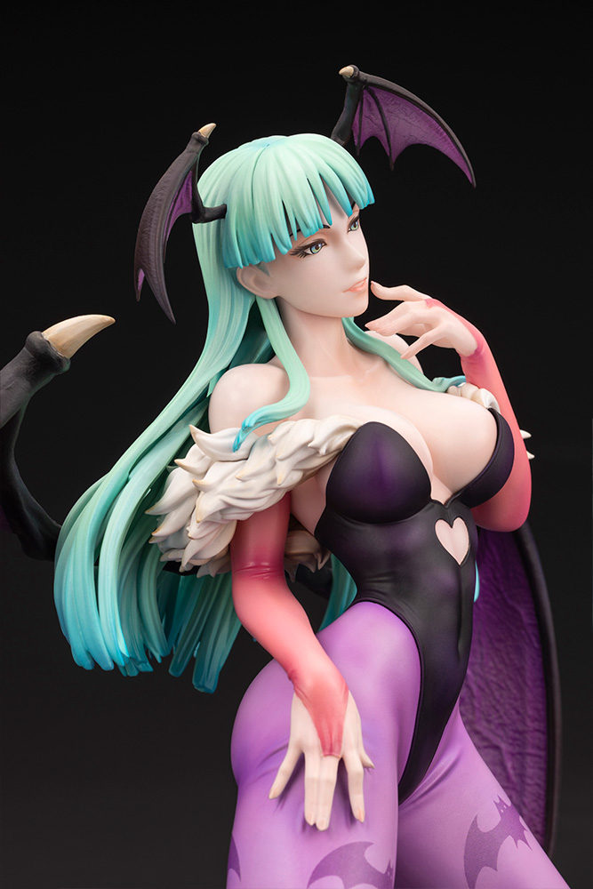 The widely spread wings are carefully sculpted down to the texture of the thin membrane, and Morrigan’s distinct bewitching charm is reflected in every detail, from the flow of her hair to the gestures of her fingertips.