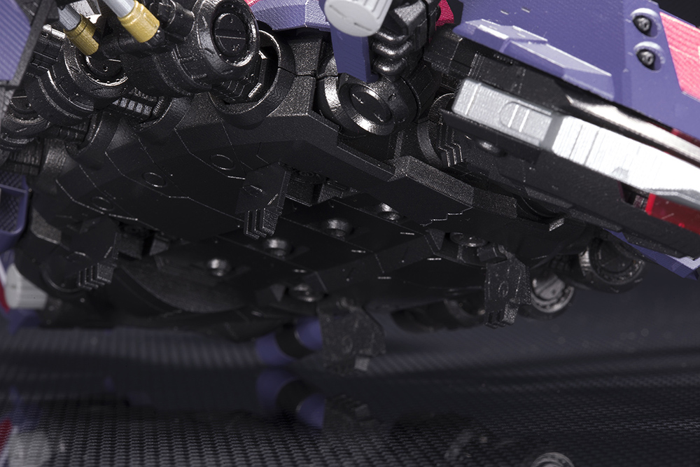 ■ The Charged Particle Cannon is equipped on the end of the model’s long tail. The AZ 120mm Hyper Laser Gun and AZ 120mm Hyper Beam Gun can be deployed, allowing the central barrel to be extended and displayed in action.