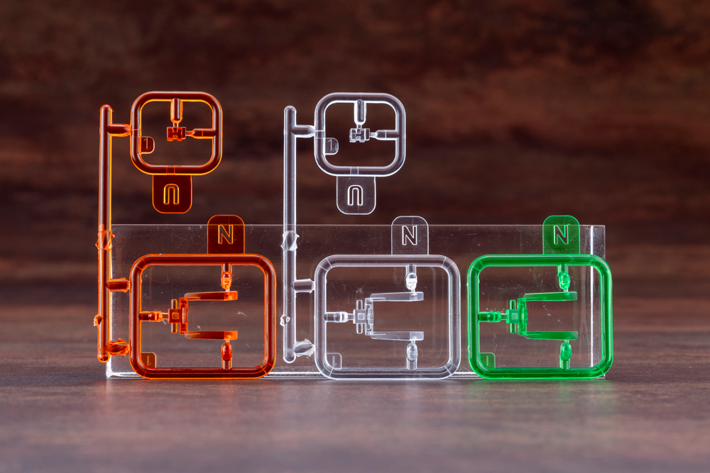 • The clear parts of the cockpit on the head come in clear green and clear orange as well as colorless clear that can be customized with model paints in colors of your choice.